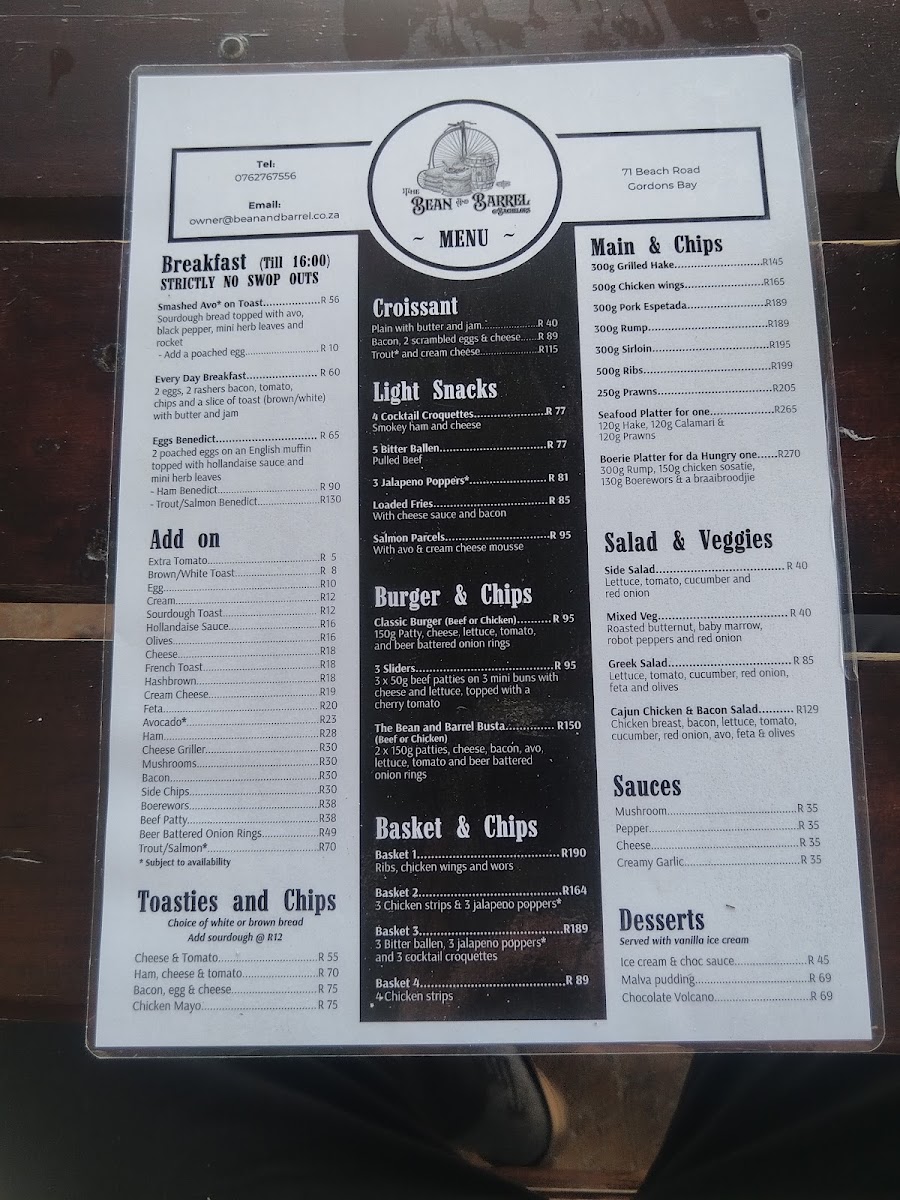 The Bean and Barrel @Bachelors offers a straightforward and inviting menu that blends casual café fare with a touch of coastal comfort. You’ll find a range of simple yet satisfying options designed to enjoy throughout the day, from morning coffee rituals to breezy lunches and relaxed dinners.